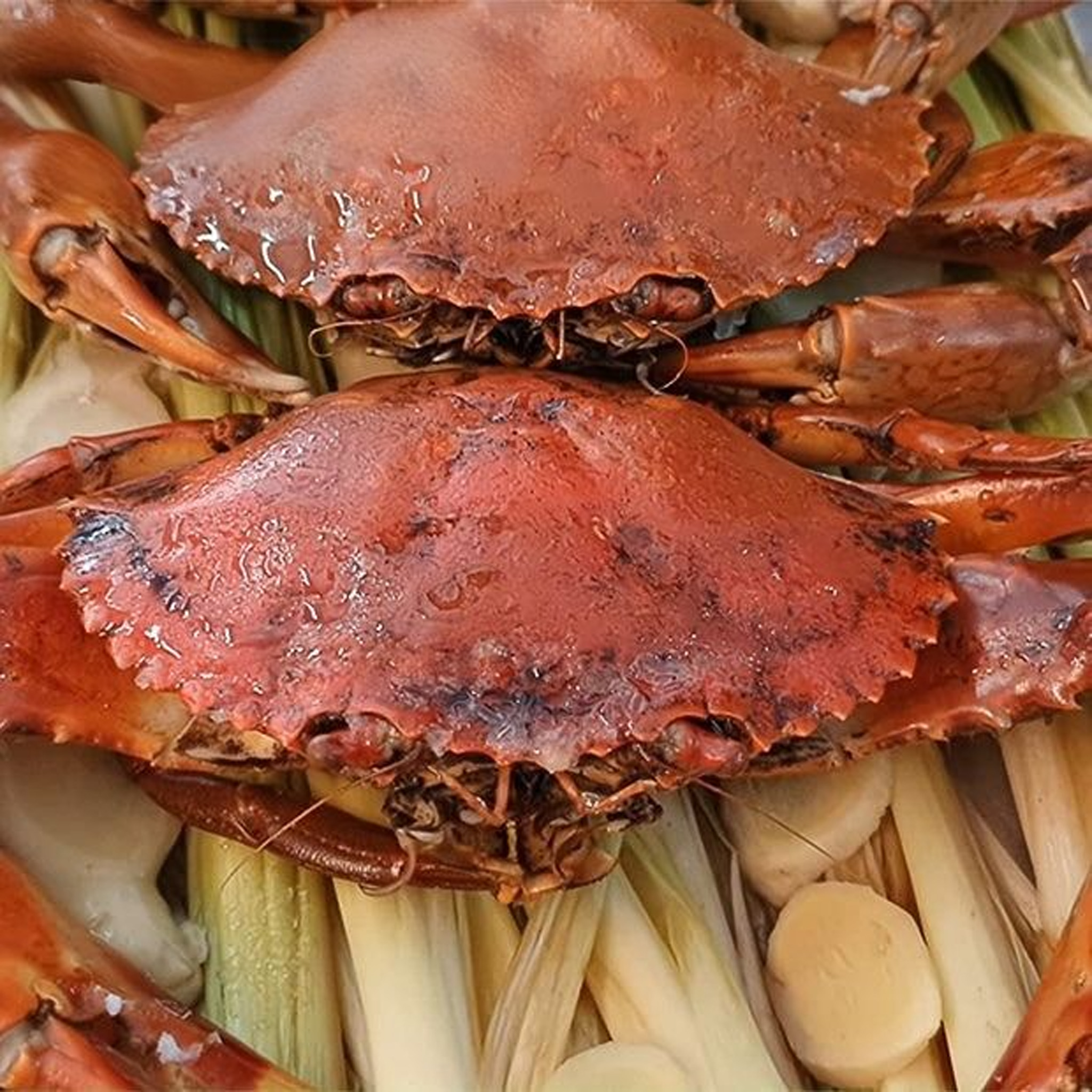 Cua thịt trong khoảng size 450g – 700g thường có hình dáng lớn, vỏ màu sậm, cứng và chắc. Khi được hấp hoặc luộc chín, cua có màu đỏ gạch bắt mắt. Phần thịt bên trong trắng, thơm, săn chắc nhưng vẫn giữ được độ mềm và vị ngọt tự nhiên.