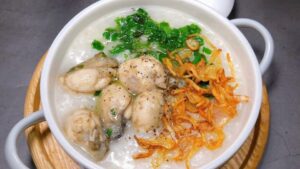 Cháo hàu sữa nấu hạt sen sẽ là món vừa dễ làm, vừa bổ dưỡng. Sự kết hợp giữa vị ngọt của hàu và bùi bùi của hạt sen làm bạn bị nghiện món cháo này.